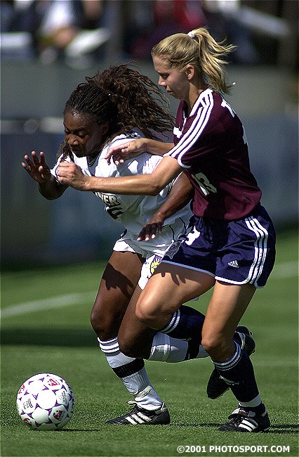 Margaret Tietjen battles with New York's Ann-Kristen Aarones in a game June 30, 2001. Photo©2001 PHOTOSPORT.COM